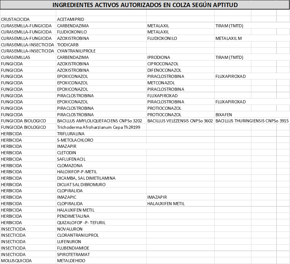 La Dirección General de Servicios Agrícolas (DGSA) emitió una advertencia sobre el riesgo de detección de residuos de fitosanitarios en la cosecha de colza cuando se utilizan los principios activos paraquat y 2,4-D. El organismo recordó que los productores, asesores y empresas aplicadoras deben extremar los cuidados en las prácticas de aplicación y lavado de maquinaria, y publicó además la lista de principios activos autorizados para su uso en el cultivo de colza según aptitud.