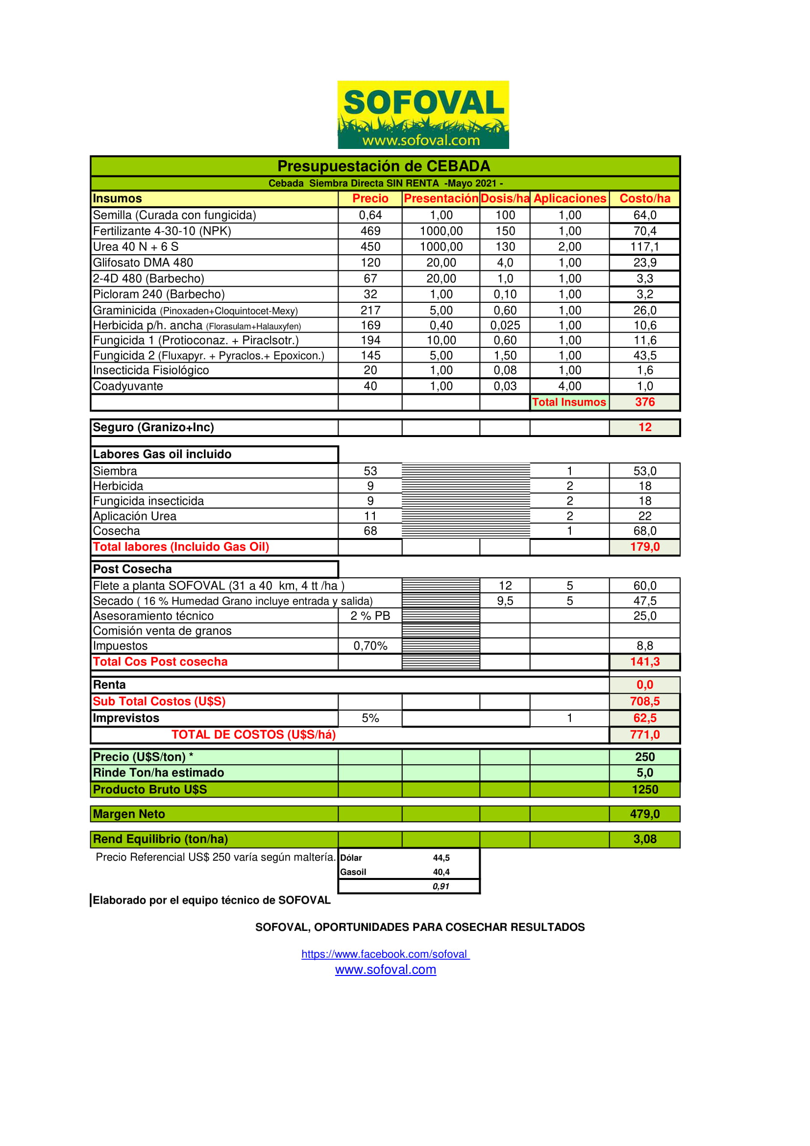 - Costos – Cebada 2021