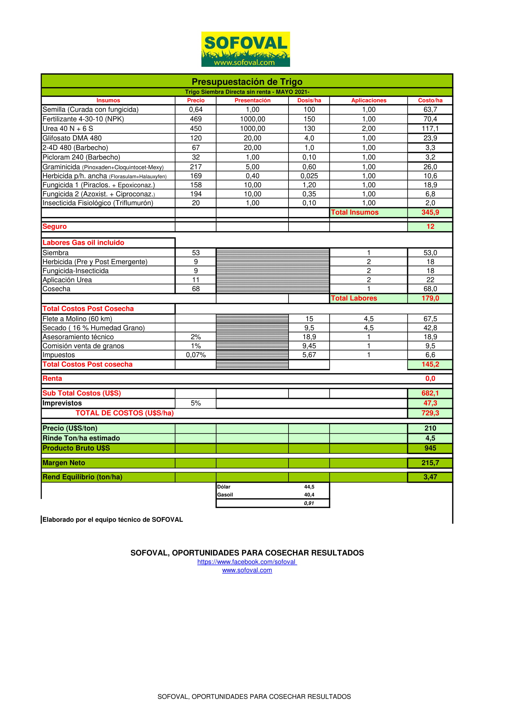 - Costos – Trigo 2021