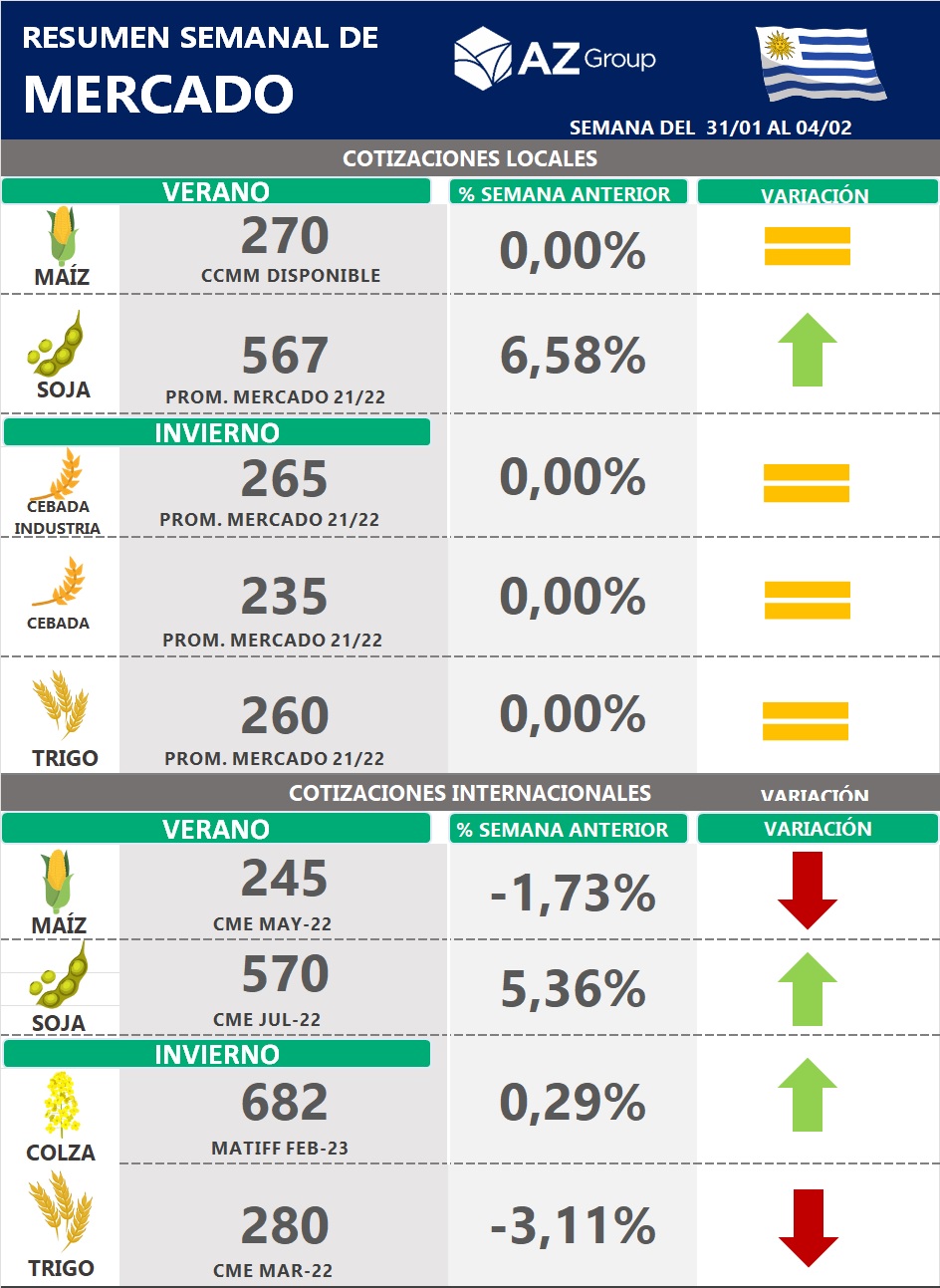 Las cotizaciones se vieron impulsadas por nuevos recortes productivos en Brasil y Argentina donde los privados estiman que la producción de la campaña 2021-22 estará en torno de las 125 millones de toneladas (Mt) y 42 Mt respectivamente.