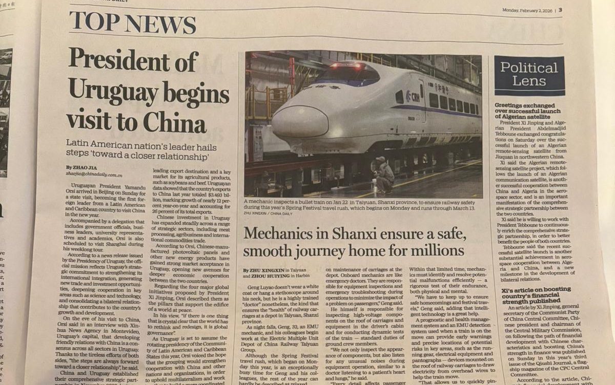 La aparición de Uruguay en la portada y en las páginas de actualidad internacional del diario chino refuerza el posicionamiento del país en la agenda asiática y confirma la importancia que Beijing asigna al relacionamiento bilateral, en un momento clave para la redefinición de estrategias comerciales y diplomáticas a nivel global.