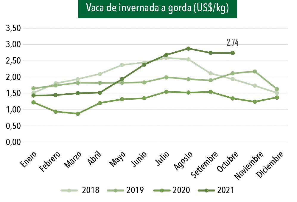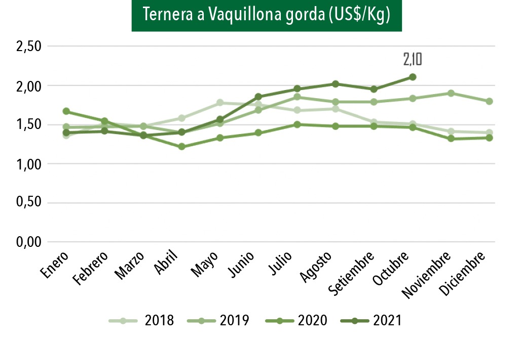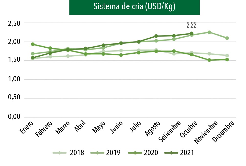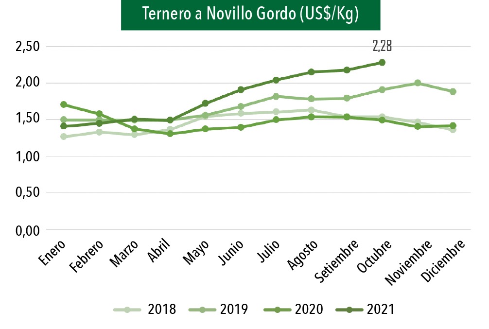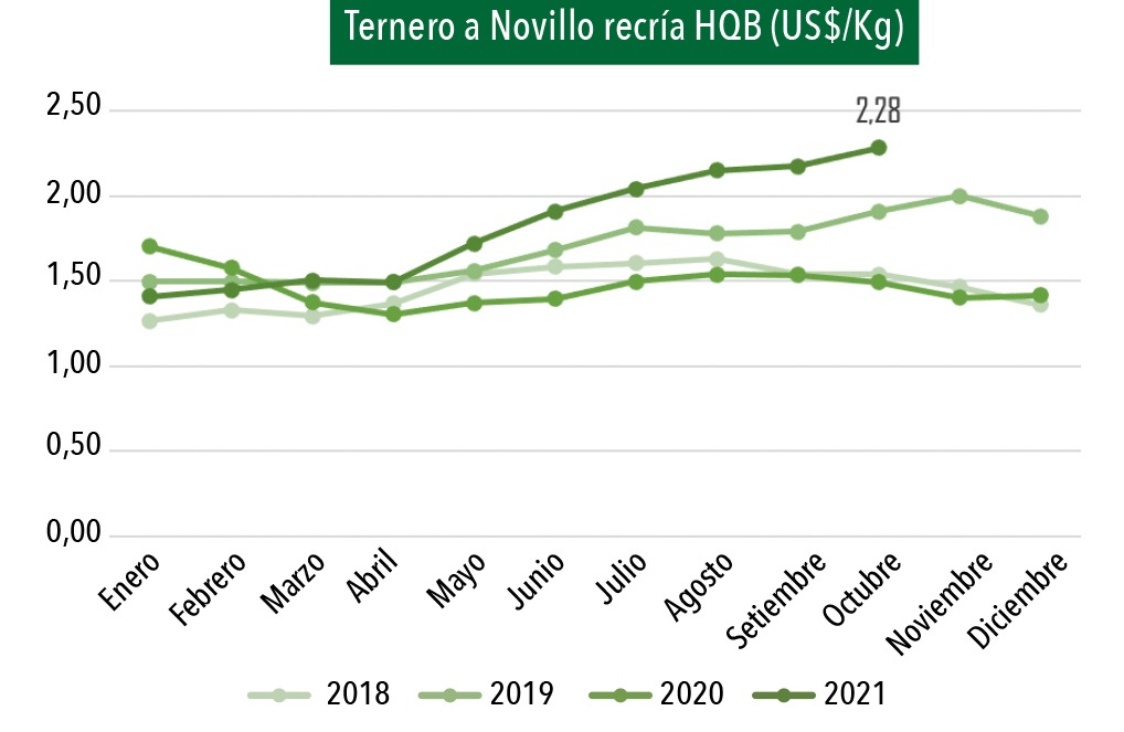 Precios implícitos: la transferencia de valor de las excelentes exportaciones se están reflejando en un incremento muy notorio en todos los negocios de cría, recría e invernada. Recordemos que precio implícito multiplicado por la producción de carne genera el producto bruto ganadero de una empresa, por lo cual, a producción física constante esperaríamos un incremento significativo de este indicador, según el análisis de Apeo Agro publicado en la Revista Verde N° 96, que contiene datos hasta el 20 de octubre.